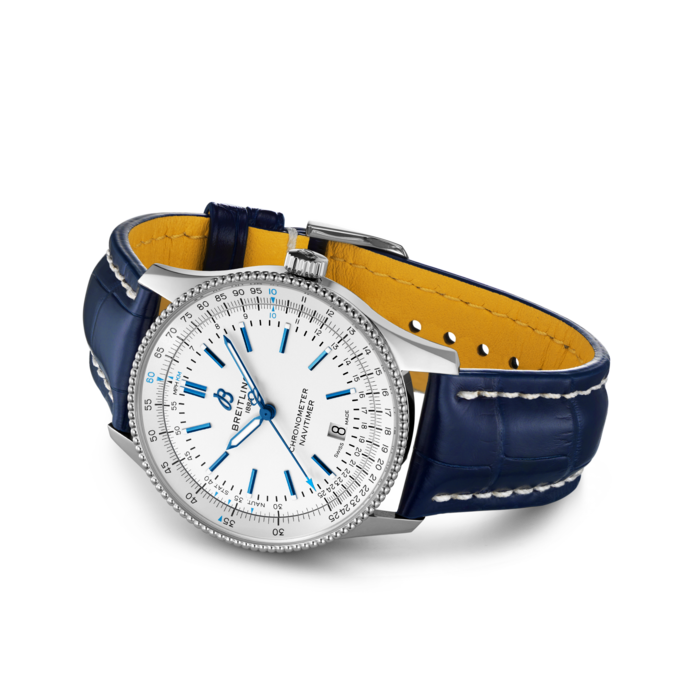 Refinado y elegante, el Navitimer Automatic 41 combina el atractivo histórico de un verdadero ícono con la sofisticación de un reloj contemporáneo. Disponible en una variedad de materiales que incluyen acero inoxidable y oro rojo de 18k, la caja de 41 mm presenta un bisel de cuentas y una gama de elegantes diales negros, antracita, azul o plata. Esta edición solo está disponible en línea y limitada a 500 piezas.